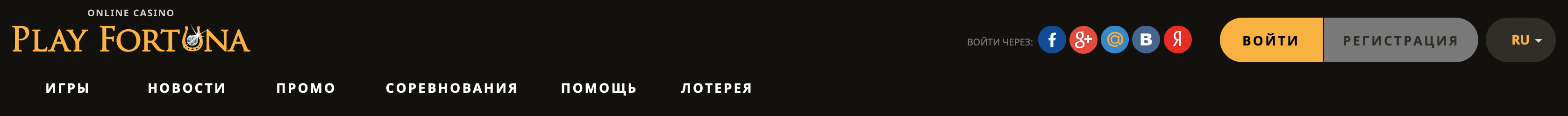 В шапке официального сайта Play Fortuna доступны следующие меню: